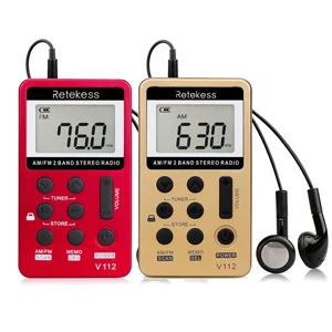 V112 Radio Mini Pocket Radio Receiver Portable Radios AM FM Rechargeable Sleep Time Earphone for Walkman Go Hiking