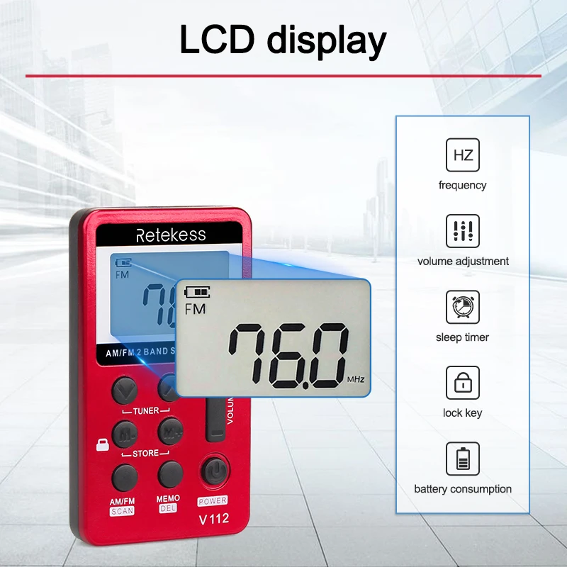 2.LCD display:V112 small size radio with LCD display,which can display the battery consumption,frequency,volume adjustment,the time of the sleep timer,the symbol of lock key.Clear display help you operate the radio easily.Small radio for youngers,older,husband.