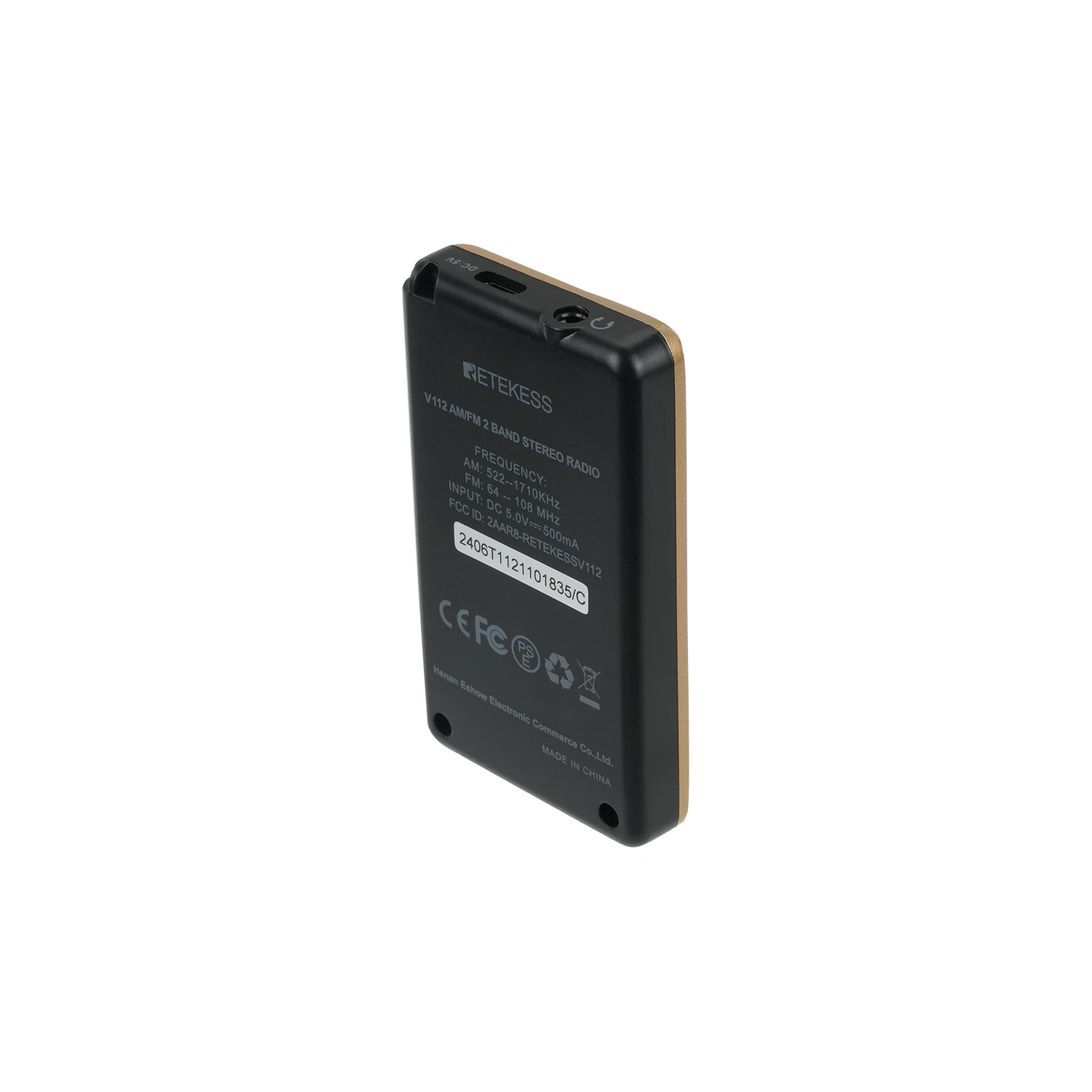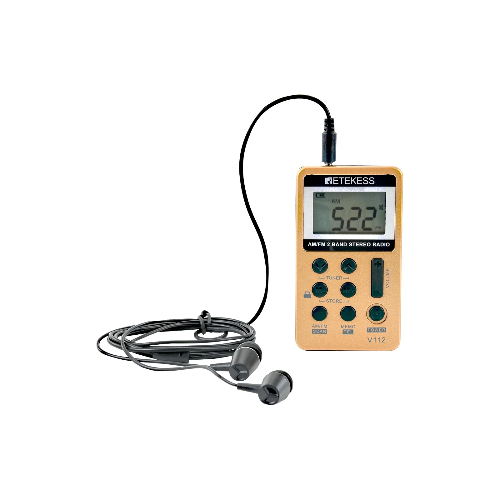 4.3.5 mm Headphone jack:V112 portable radio without external speakers.When receiving the radio stations, please extend the earphone cable as far as possible for better effect. This pocket radio does not have the speaker, you must wear the headset to listen; this portable radio can work with any other 3.5mm earphone.
